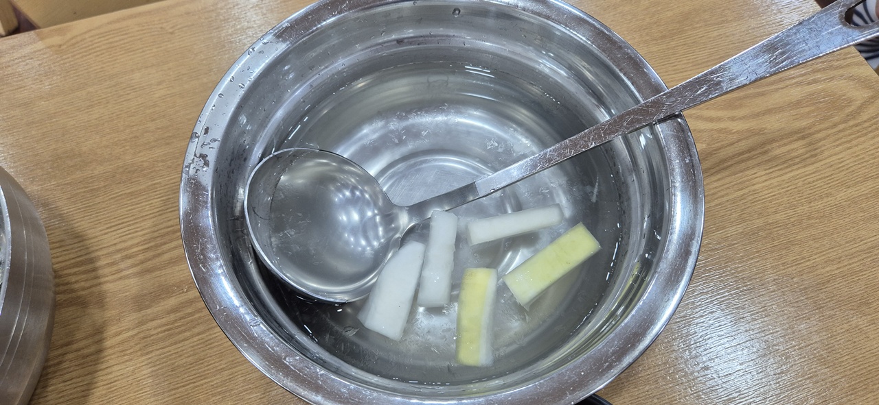 동치미국물이 인심 넘치시게 많이도 나온다.